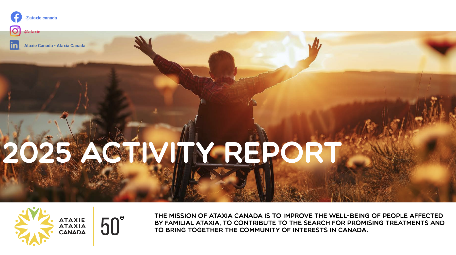 Improve the well-being of people affected by familial ataxia, contribute to research in promising treatments and bring together the community of interest in Canada.